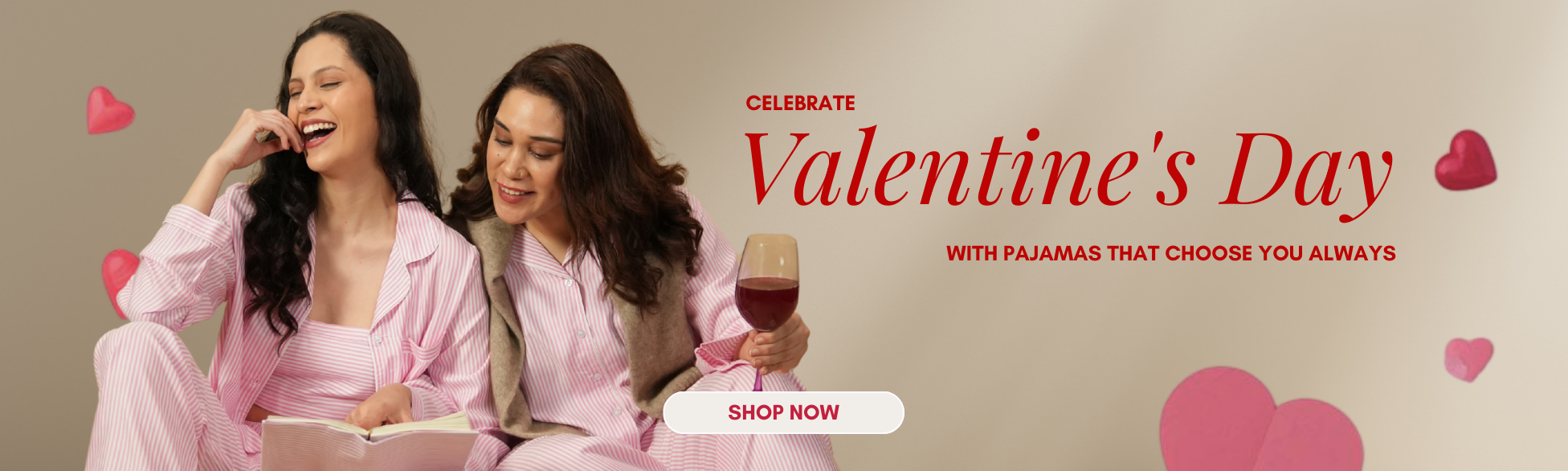 Amy Heart Printed Viscose Women's Pajama Set - Full Sleeves