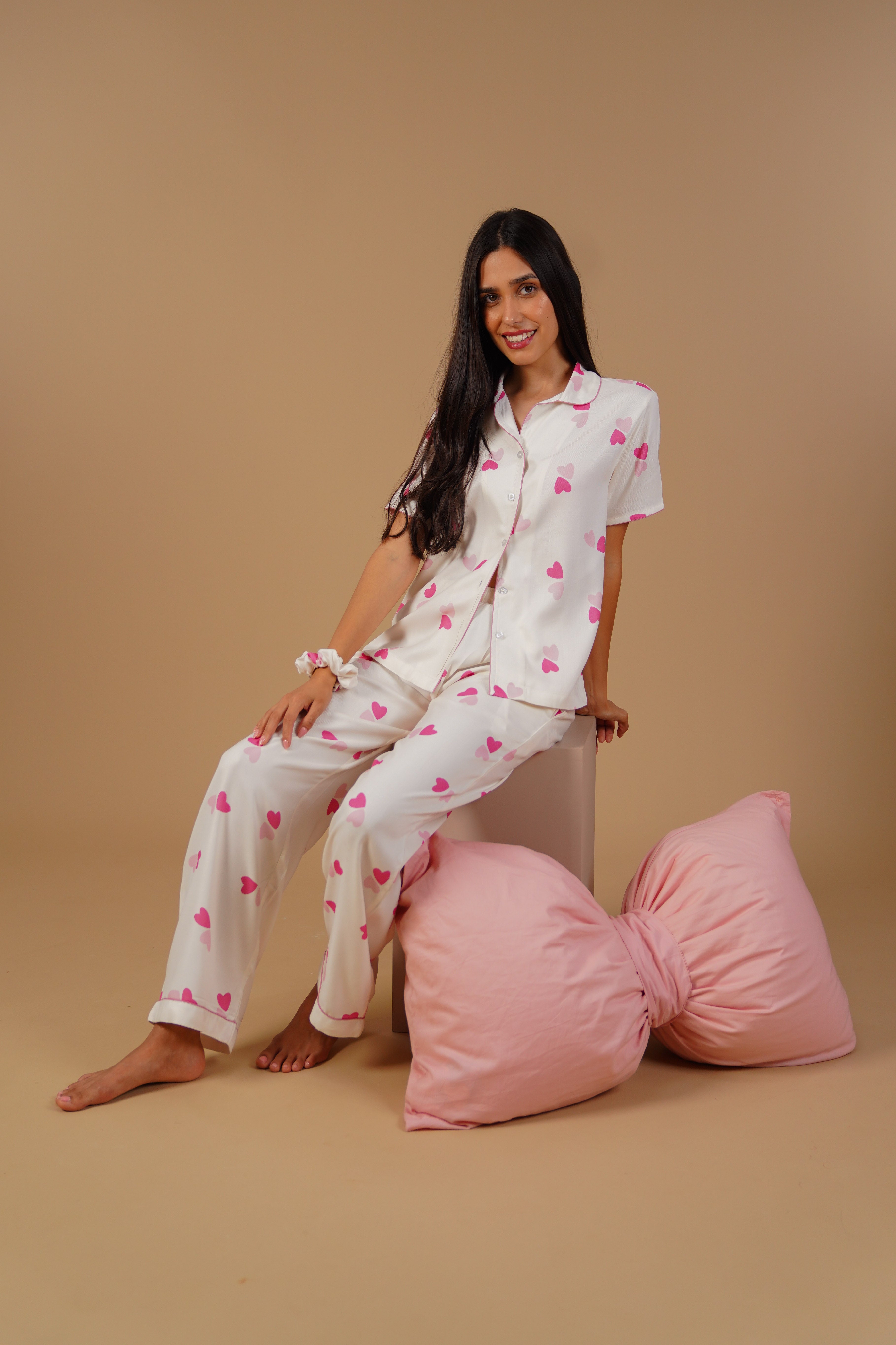 Amy Heart Printed Viscose Twill Women's Pajama Set - Half Sleeves