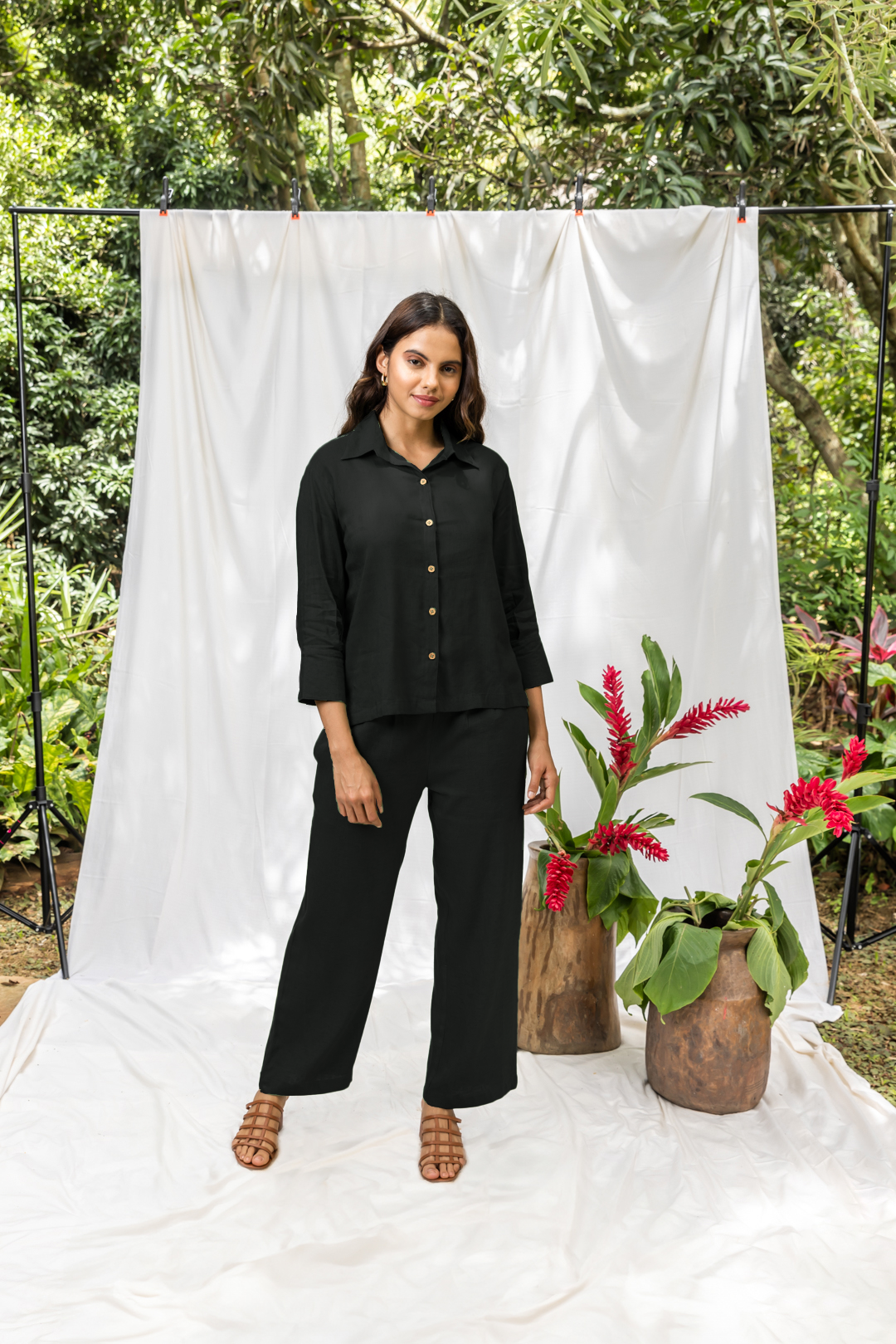Complementing the shirt, the casual bottoms compete the co-ord set with a touch of laid-back elegance. Crafted for both comfort and practicality, this co-ord set is designed to offer a relaxed yet refined aesthetic. Their adaptability allows you to seamlessly transition from a day at the office to a weekend brunch with friends, offering a versatile wardrobe staple that can be dressed up or down to suit diverse settings.