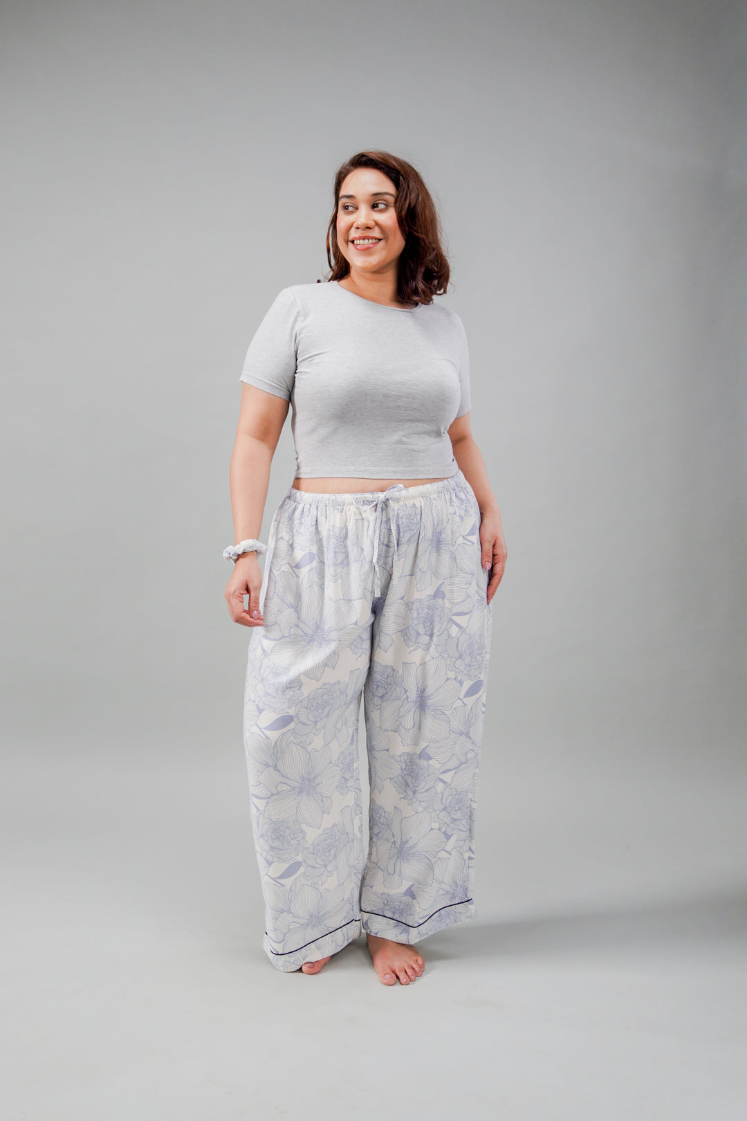 Elevate your relaxation game with our Ivy Pajama, now in all sizes. Made from ultra-soft, breathable fabric, this pajama offers comfort for cozy evenings at home. The delicate light blue floral print brings a touch of whimsical charm, turning every evening into a mini retreat. Not to forget the contrast navy piping detail.