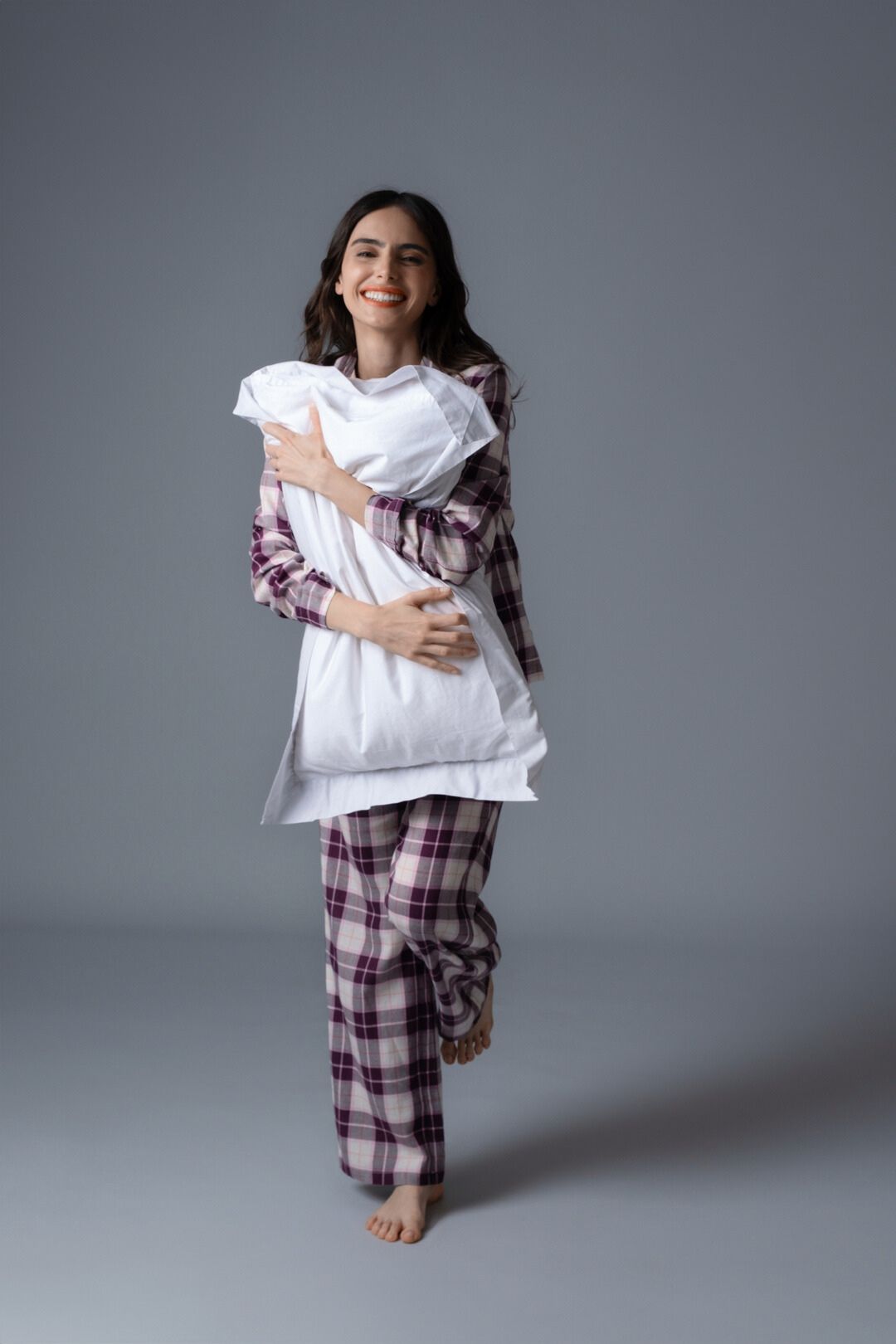 Our best seller is now available in full sleeves! A bedtime staple, this pajama set features our classic gingham pattern, a nightwear favorite. Made from a soft, lightweight cotton, it's perfect for those tricky transitional periods when you want to feel cozy without being too warm. The shirt is designed with full sleeves and pearl white buttons for a relaxed, comfortable fit, making it an essential addition to your nightwear collection.