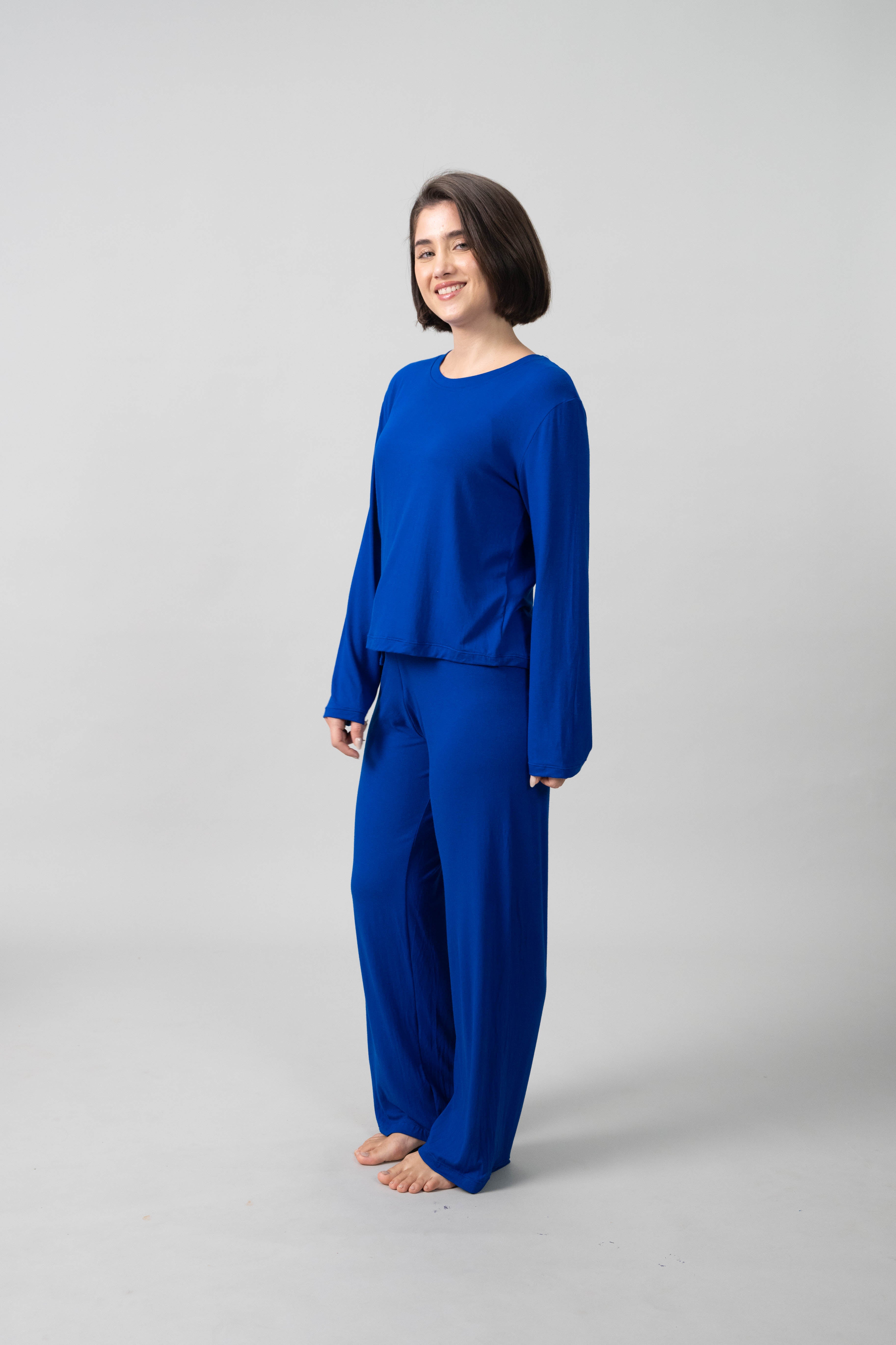 Royal Blue Lucy Butter - Soft Viscose Knit Women's Pajama Set - Full Sleeves