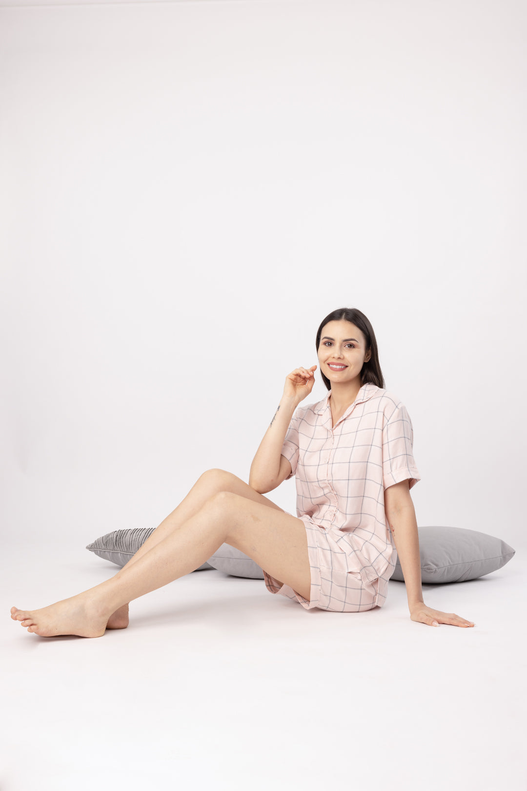Summer Pink Checked Cotton Lurex Women's Shorts Set