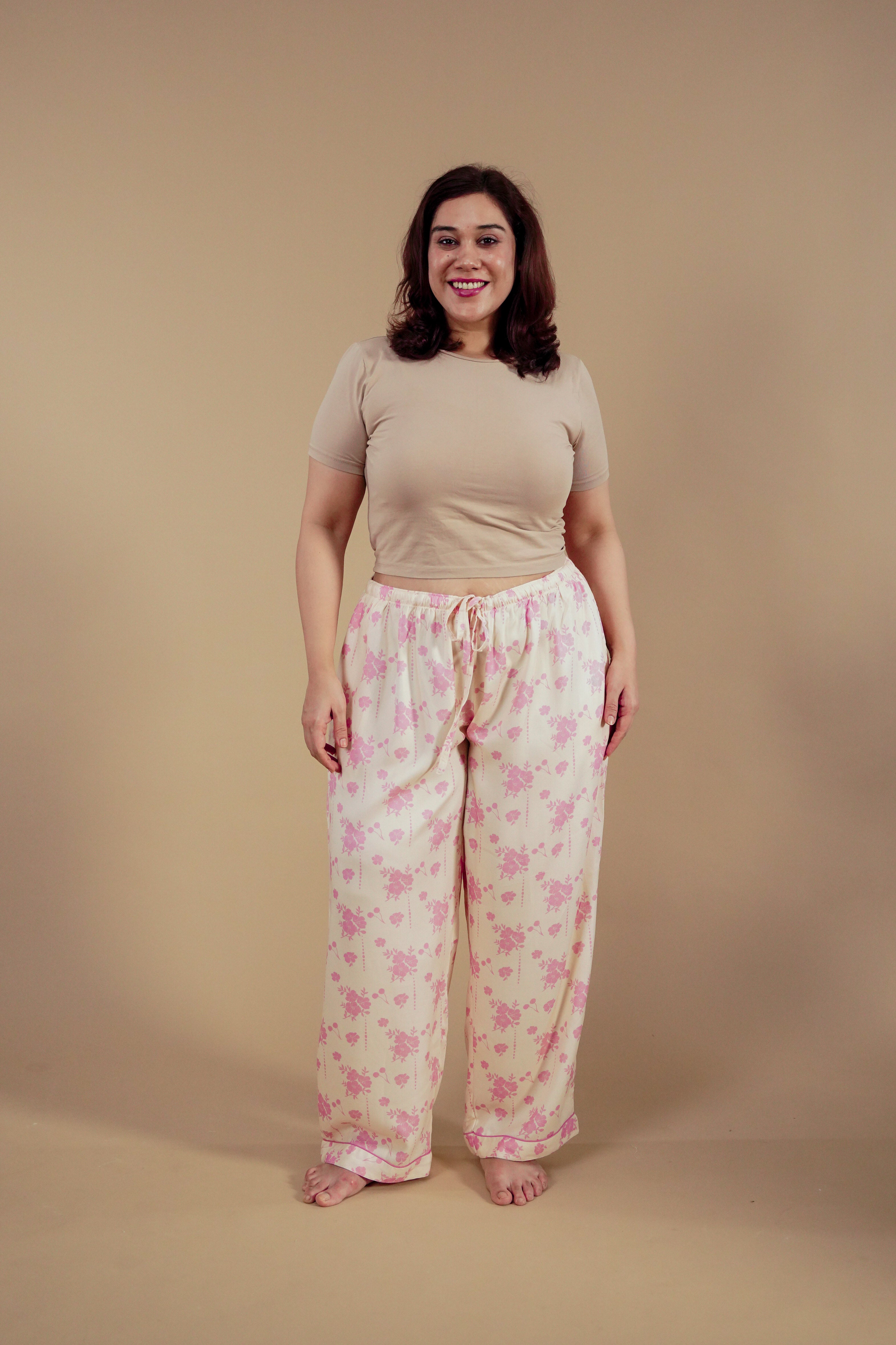 Ease into effortless comfort with the Beige Blossom Pajama, tailored in a silky-soft, breathable fabric that feels smooth and lightweight against the skin. The subtle floral print in soft pink tones adds a touch of freshness and timeless charm without trying too hard.