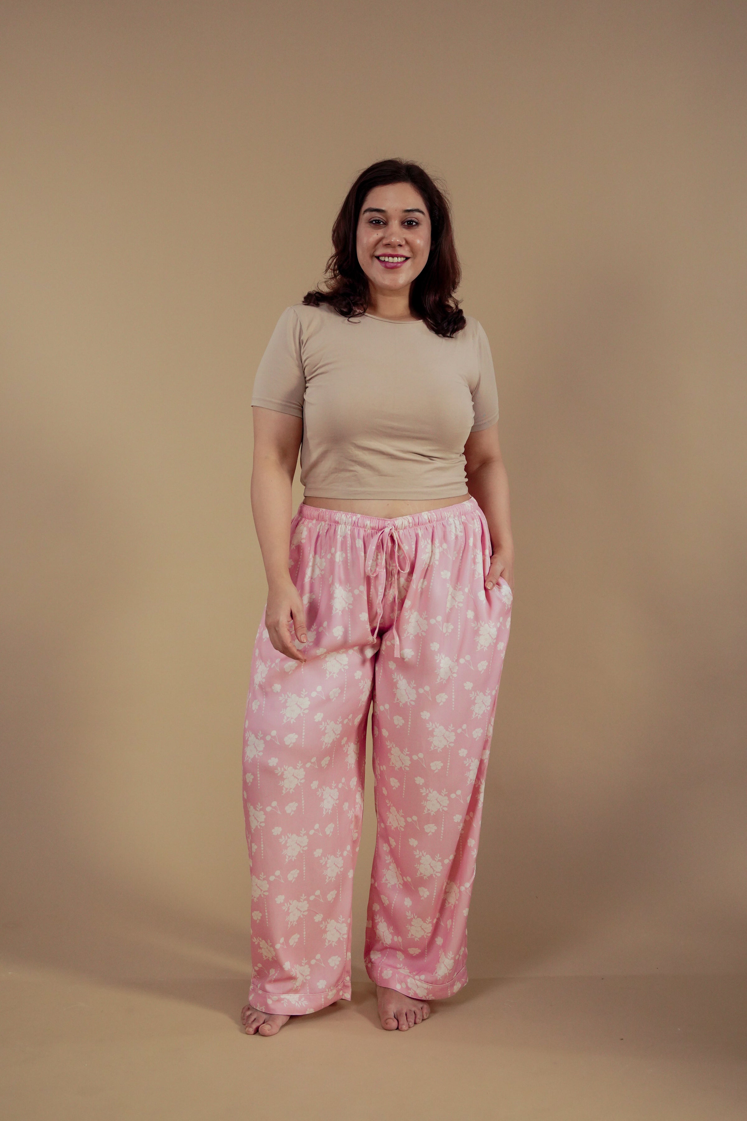 Pink Blossom Floral Printed Viscose Twill Women's Curve Pajama