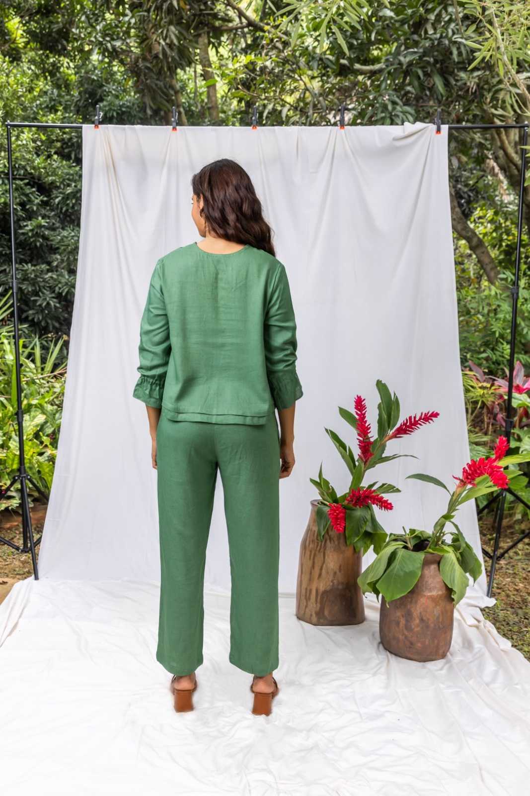 Masai Green Linen Women's Lounge Pleated Co-ord Set