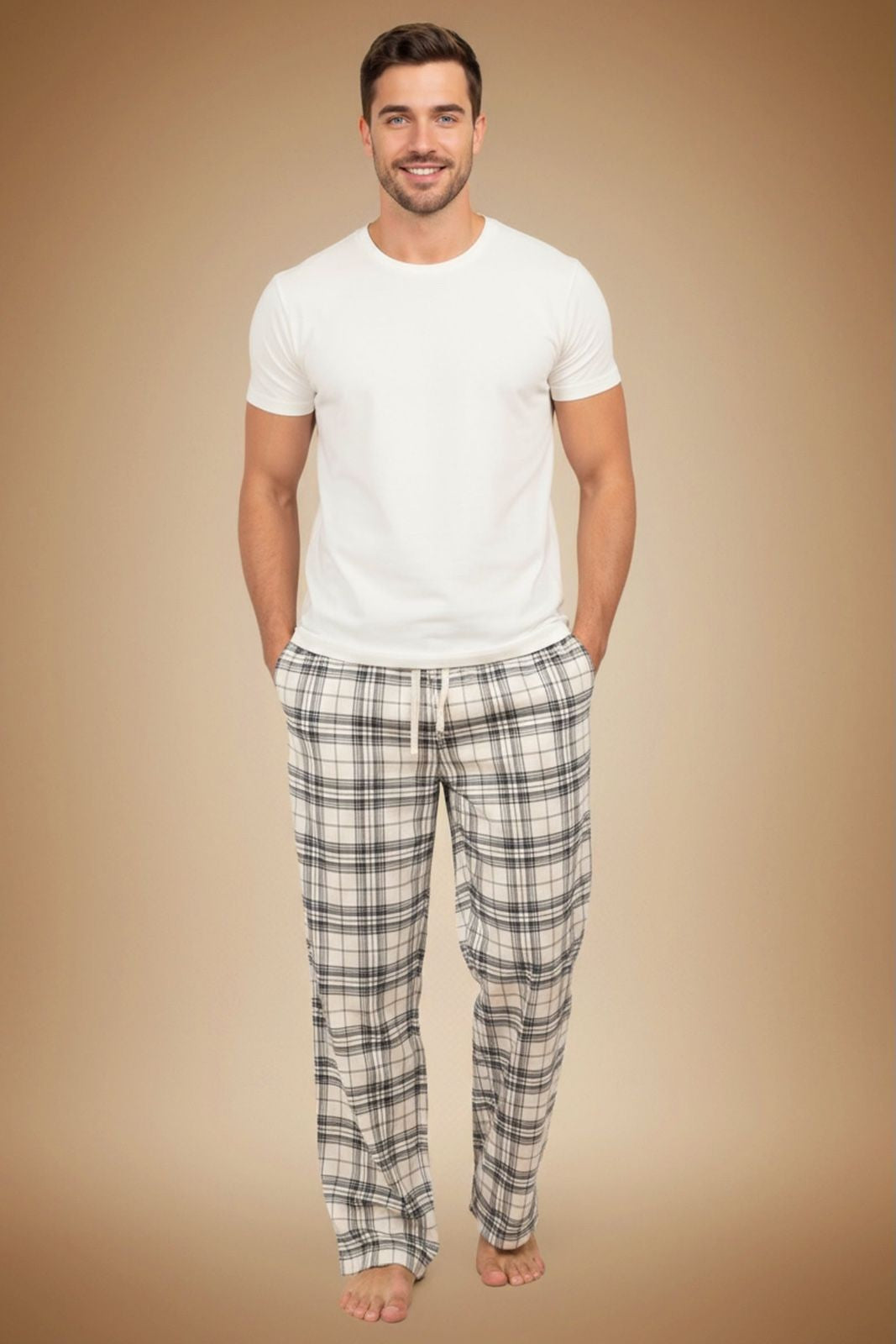 The White Sage Plaid Men’s Pajama brings a clean, modern plaid pattern in soft sage and neutral tones—fresh, understated, and effortlessly refined.