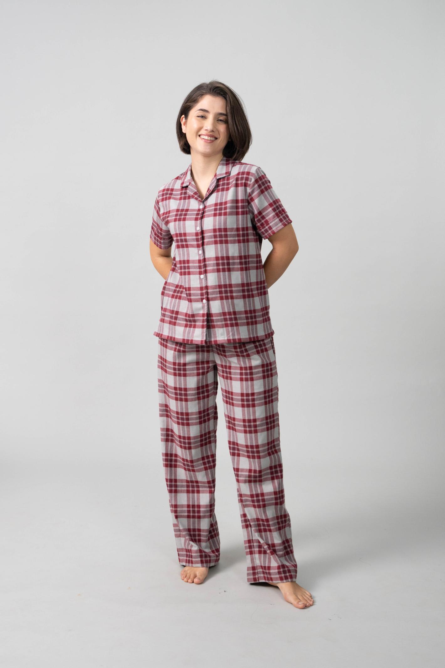 Ruby Plaid Cotton Twill Women's Pajama Set - Half Sleeve
