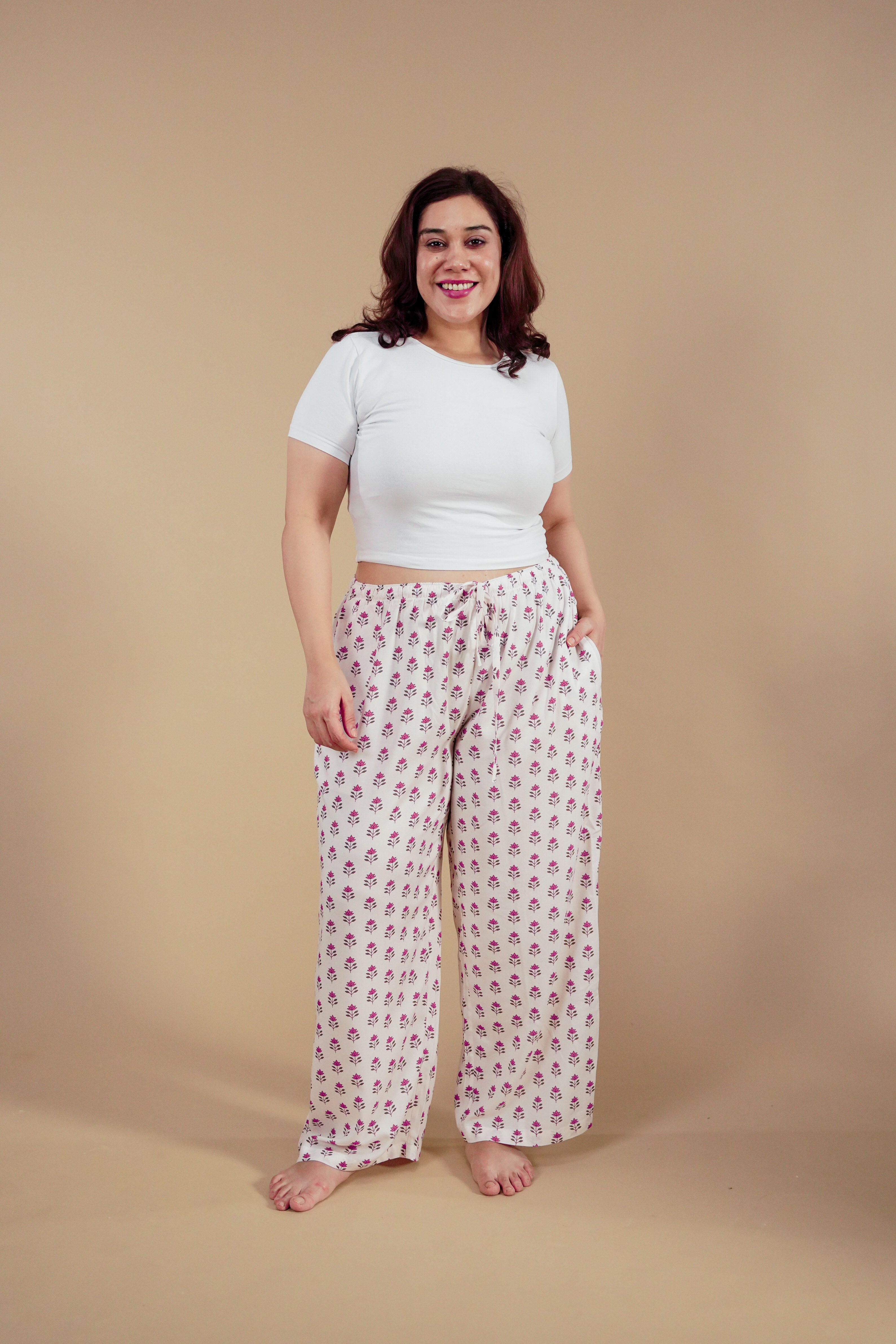 The Aira White Floral Pajama is crafted in a silky-soft, breathable fabric that feels smooth and weightless against the skin. Set on a milky-hued base with delicate floral prints, it brings a fresh yet graceful charm to your everyday lounging.